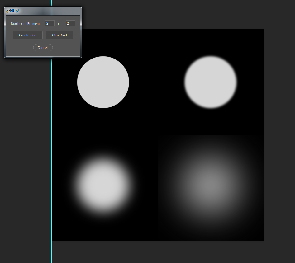 It is designed to create gridlines using photoshop guides. The intended use is for making VFX flipbook textures, but can be useful in a number of contexts!